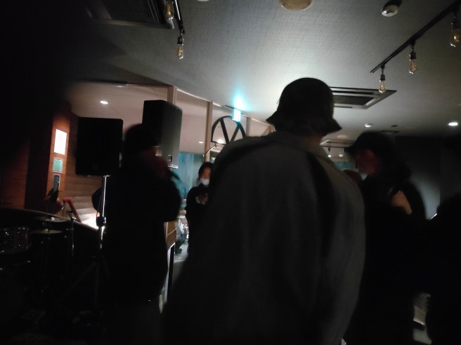 トッド・テリエ以来半年ぶりのエビスヤは喋って歩いてると道に迷って予定より30分くらいムダに歩いてしまった。着くとすでにアイワビーツさんのDJ。2000年前後のサウス・ヒップホップをヒットチューン織り交ぜつつガンガンに流してた。エビスヤでこういうの聴くの初めてかも知れない。デカくて良いスピーカーからベースの効いたダンス・ミュージックが流れると、音楽が単なる「物体」のように感じられる瞬間があって面白い。ボンボンと発せられるロウの振動が、銭湯に置いてあるひと昔前のマッサージ椅子みたくボコッと盛り上がってウネウネと蠢いてる感じ?