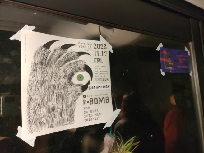 さらに夜、Luxにて栗金商店プレゼンツGet Up With It Vol.2 ゲストにK-Bomb回。wakabaのDJ終わりでホンマくんのビートライブ(相当良かった。ビートアルバムとか出して欲しい)が始まるくらいのタイミングで行ったが、もうぎゅうぎゅう。お馴染みの顔ぶれにちらほら知らない人もいていい具合の混ざり具合。自分は耳が疲れやすい人間だと思うけど、この日はなぜかほとんど疲れず、基本的にずっと会場内にいた。音楽が良かったというのはもちろん大前提だと思うけど、何か不思議な出音だった気がする。K-Bomb氏相変わらずタフで柔らかい人柄がそのまま音楽になってて最高。MPCからクラッシュシンバルのサンプルをバシバシ出すだけで泣きそうになる。Da Hiraの出演が急遽体調の都合でキャンセルになったことだけは心残りですが全部いいイベントで良かった。イベント終わってからそのまま会場で打ち上げっぽい感じで呑んでると、人に「お前がK-Popを聴いてるのは若い女と話を合わせるためだけ」と言われたり、テンション高ぶり過ぎたTaishijiからタックルされてLuxの床に転がったり、最後は節子ママもやってきてK-Bombと絡んだり、かなりワイルドな夜だった。たまに思い出すタイプの夜だなと思った。