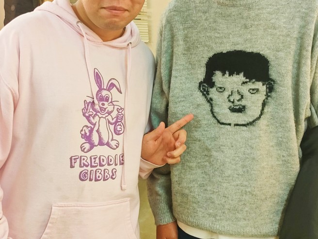 オカダダさん大臣に杉生さん、やっと会えた船津くん、huezの皆さんにトマド社長、トーフファミリーなど久しぶりの人々から初めましての方まで大集合の楽屋。トーフさんの誕生日ということもあり、厳かな緊張感よりは、終始和やかな空気に溢れた時間で、人生のある一瞬の交差を感じて眩しかった……summit増田社長が「ねじ式」セーターだったのがテンション上がったし、VaVaさんにずっと気になってた「昔出した”Buzz Lightyear”って曲、ICYTWATのトラック買ってますよね?」という話をして2015年前後の地下アトランタ~サンクララップシーンの話題で盛り上がり、あと自分はFreddie Gibbsのウサギのパーカー着て行ったら、楽屋でヒップホップ好きのいろんな人に話しかけられて良かった。フレディ知らない方に「何のうさちゃん?可愛いですね」と言われた時は「かわいいでしょ。NewJeansってグループのキャラクターです」と答えた。