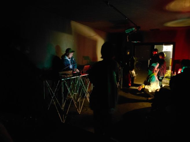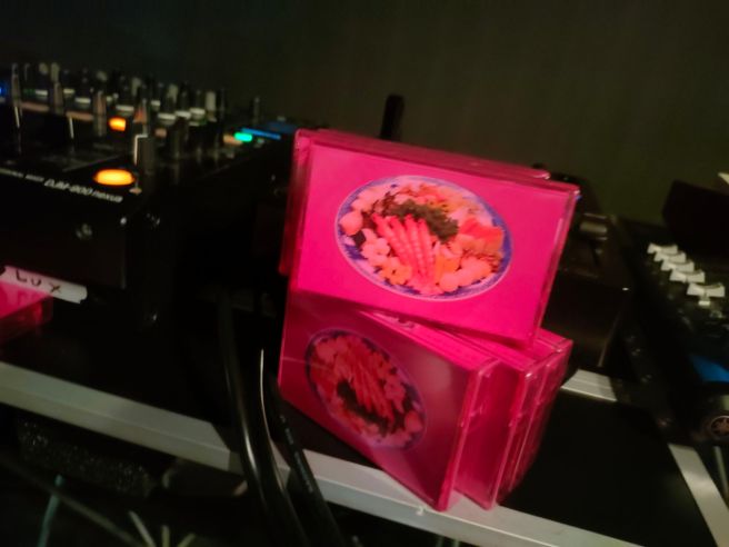 久しぶり(と言っても去年もRDCのちどり公園のレイヴなどで観てるけど)に観る食まつさんのライブだけど、今回はアンビエント・セットらしい。機材はラップトップとMIDIキーボード、SP-404mk2、マイクとAIRA E-4というラインナップ。Liveのランダム性の強いエフェクトを使って、アンビエントと言いつつもリズミックな展開、そこにE-4による声のループが重なって……という内容。一時間近いライブでもダレることなく、言葉がわからない(からストーリーがわからない)ヨーロッパのアート系のアニメ映画を観ているみたいな感じで面白い。